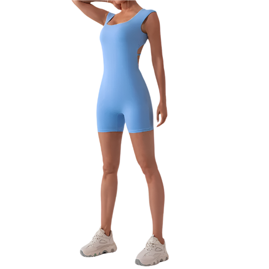 Enterizo Jumpsuit corto deportivo sin costuras para mujer para yoga o gimnasio o entrenamiento con efecto push up
