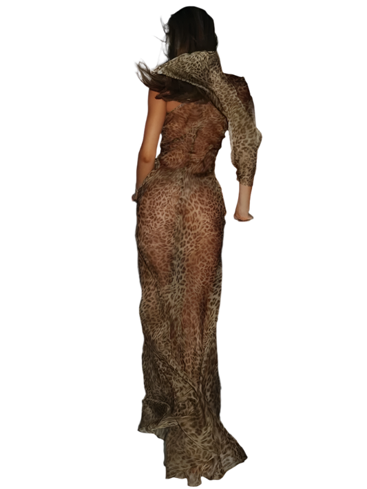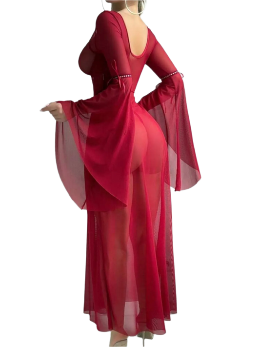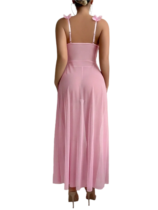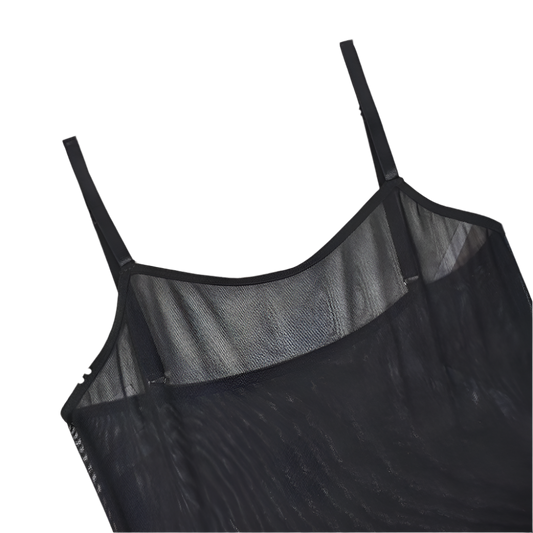 Vestido de Lencería Camisón Largo de Transparencia y Encaje con Escote en V Profundo