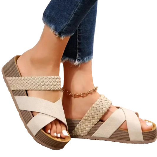 Sandalias gladiador sin cordones de punta abierta y tira cruzada ancha con plataforma gruesa en tallas grandes