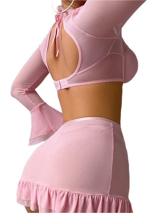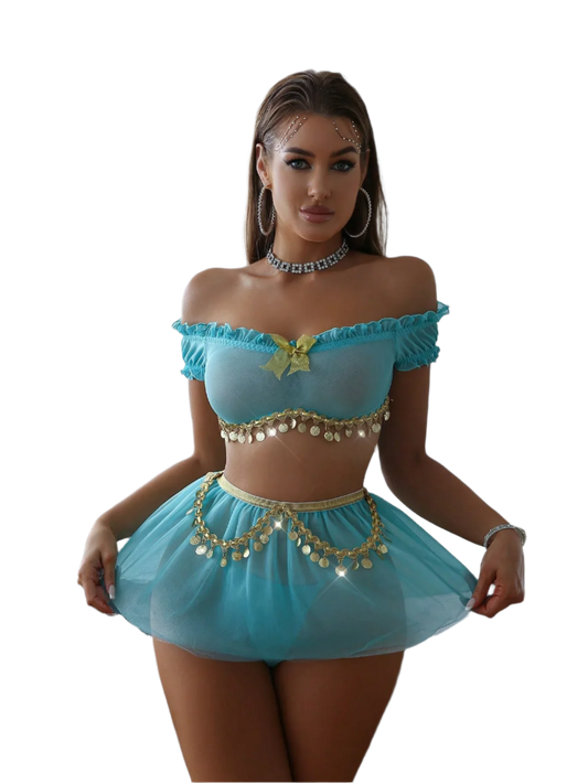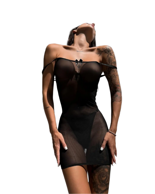 Conjunto de Lencería con Top Off-Shoulder Falda y T-string