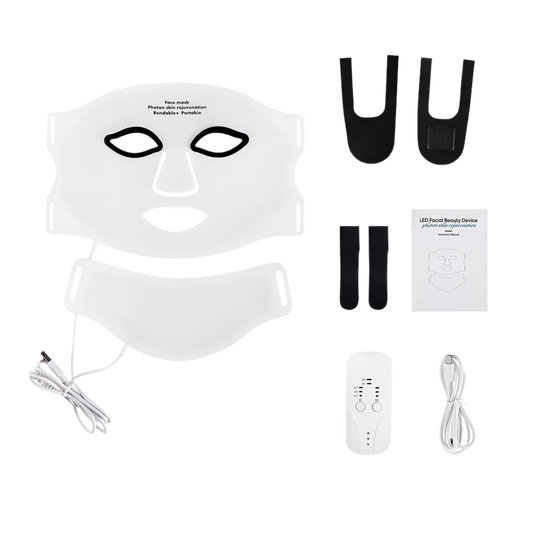 Máscara LED de Silicona para Rostro y Cuello, Terapia de Luz Roja y Luz Infrarroja, 7 Colores, Máscara Facial Flexible, Reparación de Piel, Uso Inalámbrico