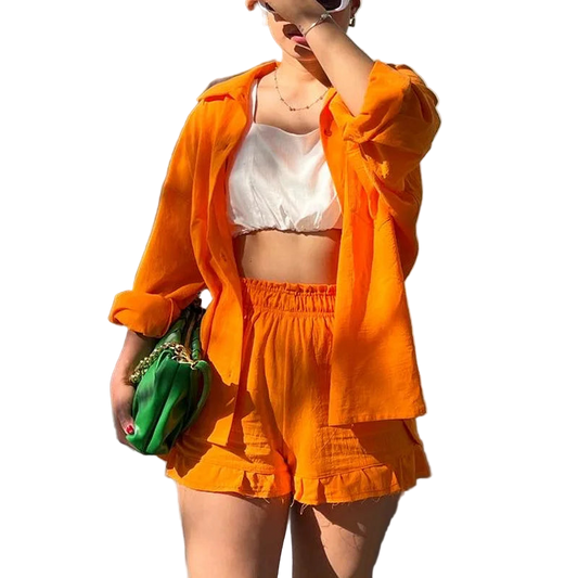 Outfit Conjunto de Camisa manga larga con solapa y short de tiro alto con cordón