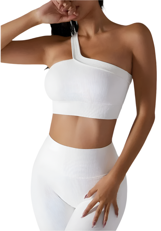 Conjunto de Gimnasio de Dos Piezas con Top de un Hombro y Shorts Cortos de Yoga