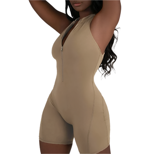 Enterizo de Manga Corta con Cierre para Gimnasio y Yoga