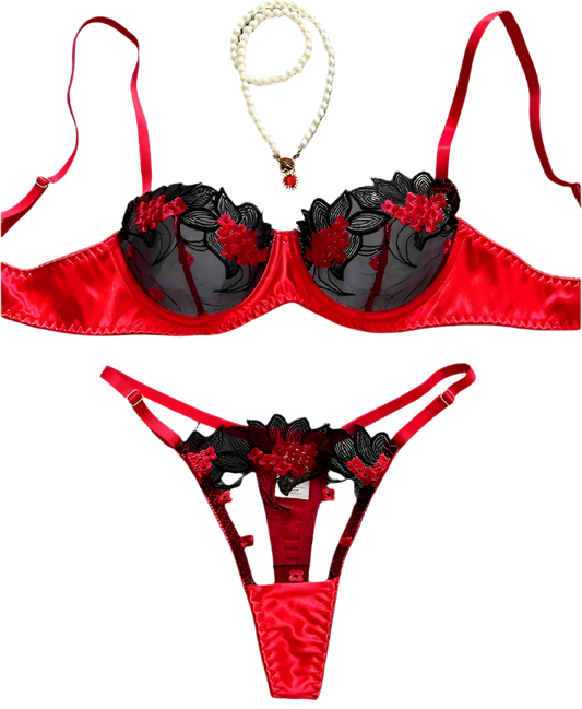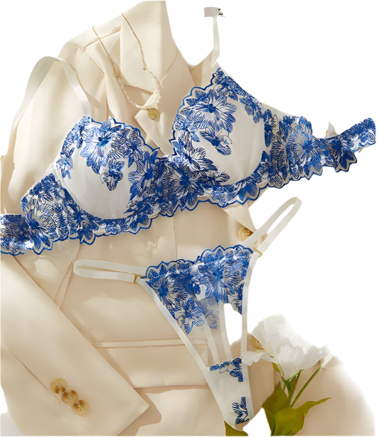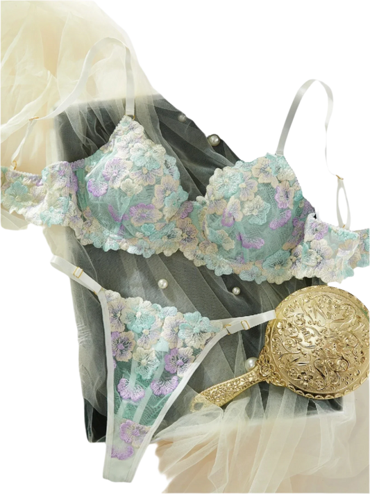 Conjunto de Lencería Elegante y Delicado con Bordado de Encaje