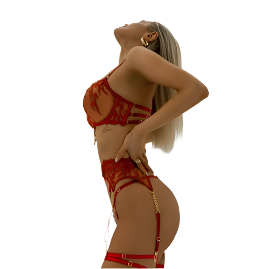 Conjunto de Lencería Erótica para Mujer con Sujetador, Pantalones y Cinturilla (6 Piezas)