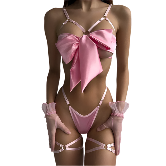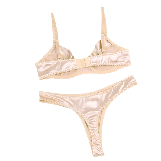 Set Conjunto de Lencería de Satén con Sujetador Abierto para Ocasiones Especiales