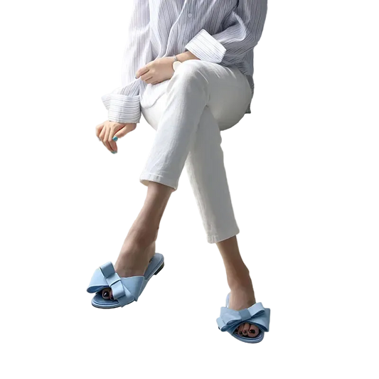 Sandalias de Seda con Moño Zapatillas Abiertas Mule Abiertos Tipo Slide